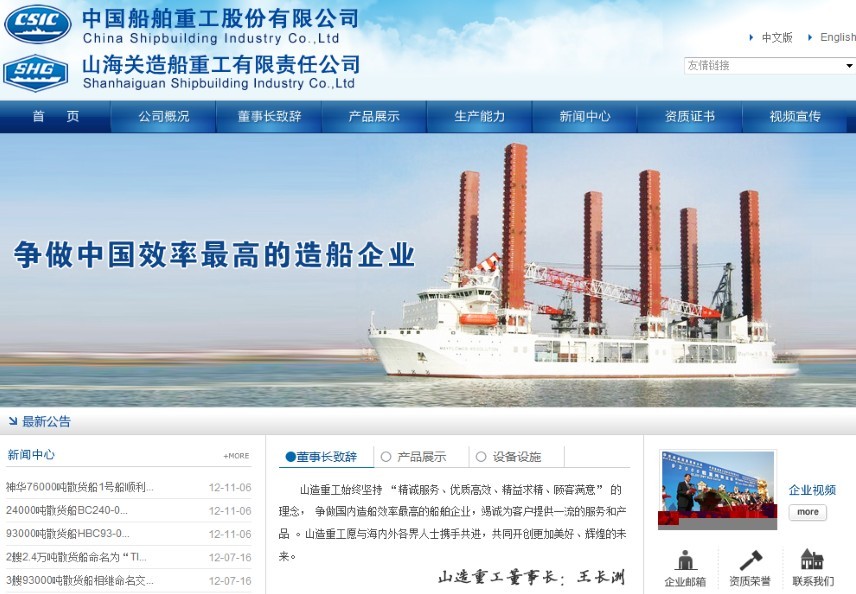 山海關(guān)造船重工有限責(zé)任公司(山造重工)由山海關(guān)船舶重工有限責(zé)任公司、河北省建設(shè)投資公司、秦皇島首秦金屬材料有限公司共同出資組建,2007年5月30日公司注冊成立,注冊資本11.8億元。山造重工是山船重工控股的子公司,山船重工是中國船舶重工集團(tuán)公司所屬的國有大型一類企業(yè)。