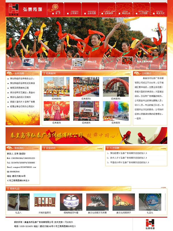 秦皇島市弘泰廣告?zhèn)髅接邢薰境闪⒂?002年,位于海港區(qū)繁華地段,主要業(yè)務(wù)范圍:承攬大型的慶典活動(dòng),大型演出活動(dòng),及各種廣告牌匾的制作。公司具備專業(yè)的策劃撰稿人員,設(shè)計(jì)人員,專業(yè)的施工隊(duì)伍,為您提供全方位的服務(wù)。公司始終堅(jiān)持以質(zhì)量謀發(fā)展的經(jīng)營理念,一直受到合作單位的信賴與好評。成功舉辦過“全國首屆校園歌手電視大賽”,“廣場音樂會”,“08年奧運(yùn)會海上安保演習(xí)”,“新天地購物廣場開業(yè)”等大型活動(dòng)。