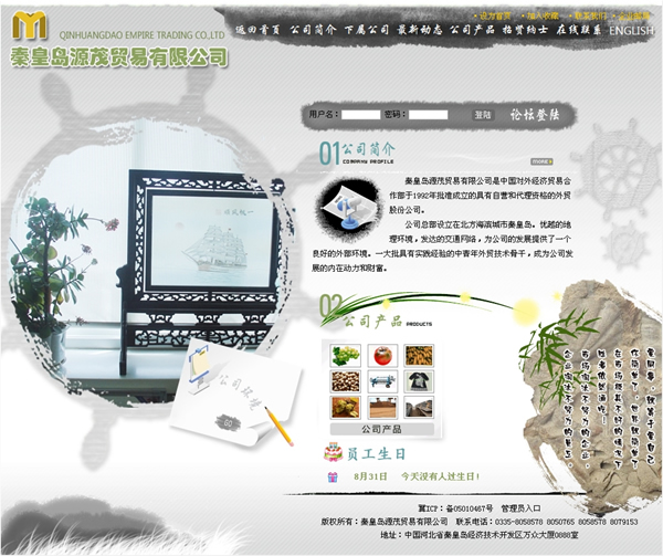 公司總部設立在北方海濱城市秦皇島。優(yōu)越的地理環(huán)境,發(fā)達的交通網(wǎng)絡,為公司的發(fā)展提供了一個良好的外部環(huán)境。一大批具有實踐經(jīng)驗的中青年外貿(mào)技術骨干,成為公司發(fā)展的內在動力和財富。
