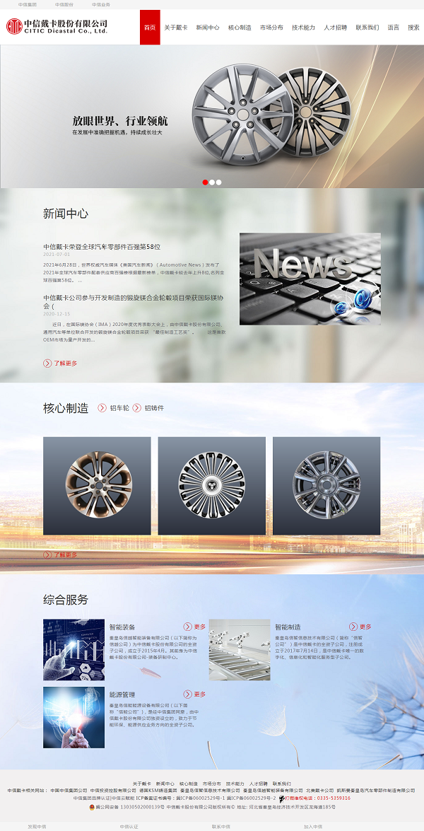 1988年,伴隨著改革開(kāi)放的春風(fēng),中信人做出了一個(gè)重大決定,在渤海之濱秦皇島建造了中國(guó)大陸第一家鋁車(chē)輪制造企業(yè)----中信戴卡股份有限公司(以下簡(jiǎn)稱(chēng)中信戴卡),中國(guó)大陸第一只鋁車(chē)輪在這里誕生。
