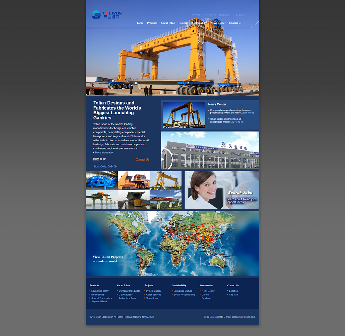 秦皇島天業(yè)通聯(lián)重工科技有限公司是中國(guó)國(guó)內(nèi)知名的集研發(fā)設(shè)計(jì)、制造安裝、銷售服務(wù)為一體的重工裝備制造企業(yè),是上市公司秦皇島天業(yè)通聯(lián)重工股份有限公司的全資子公司(股票代碼:002459),公司年銷售額已超過數(shù)億元。 公司致力于大型架橋施工設(shè)備、各種大型門式起重機(jī)、大型跨式搬運(yùn)機(jī)、特種運(yùn)輸車輛、大型管片模具的研制、生產(chǎn)和銷售,并擁有起重運(yùn)輸設(shè)備的安裝、改造和維修A級(jí)資質(zhì)。通聯(lián)公司提供的設(shè)備具有極高的安全性、技術(shù)的先進(jìn)性和高性價(jià)比,在國(guó)內(nèi)外眾多的重大基礎(chǔ)施工項(xiàng)目上得到了廣泛應(yīng)用,是中國(guó)大的相關(guān)設(shè)備制造商。參與了蘇通跨海大橋、上海磁懸浮、秦沈客運(yùn)專線、京津城際快速鐵路、廣州輕軌、北京地鐵13號(hào)線、廣珠軌道交通、京滬高鐵、武廣專線、京石專線、武廣專線等重點(diǎn)項(xiàng)目的建設(shè)。在國(guó)際市場(chǎng)上,通聯(lián)公司的產(chǎn)品也已經(jīng)進(jìn)入韓國(guó)、印度尼西亞、泰國(guó)、科威特、巴基斯坦、新加坡、斯里蘭卡和印度市場(chǎng),受到了國(guó)際買家的一致好評(píng)。