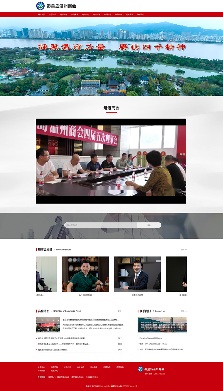 秦皇島溫州商會(huì)成立于2005年4月,是在秦皇島第一個(gè)注冊(cè)的異地商會(huì),也是全國(guó)第126個(gè)異地溫州商會(huì),商會(huì)是由溫州籍在秦皇島經(jīng)營(yíng)的工商業(yè)者和其他各界溫州籍人士自愿組成的,經(jīng)市民政局核準(zhǔn)登記的具有法人資格的非營(yíng)利性社團(tuán)組織,現(xiàn)有會(huì)員150余名,理事會(huì)成員28名。會(huì)員涉及工業(yè)電器、工程建筑、通訊、烘焙、服裝、餐飲等行業(yè)。商會(huì)秘書處為辦事機(jī)構(gòu),下設(shè)財(cái)務(wù)部、宣傳部、會(huì)員部、接待部、維權(quán)部、市場(chǎng)部。